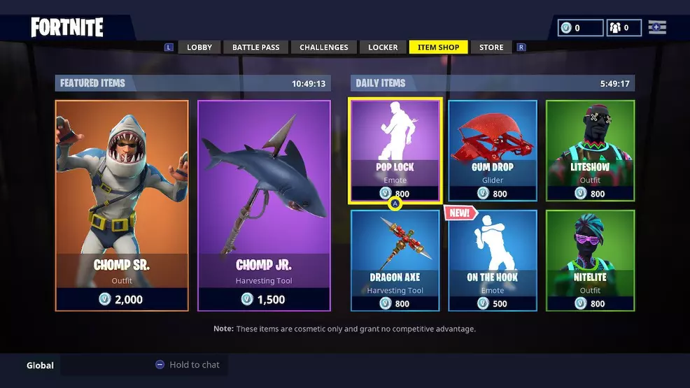 Naturally, there's a lot more on offer than a stylish new emote. Fans who like to show off their natural predatory instincts would likely be interested in the new Chomp Sr. player skin, which features a hard-to-miss shark theme, as well as the Chomp Jr. pickaxe skin, a natural companion to those players with a habit of showing their teeth to the competition.